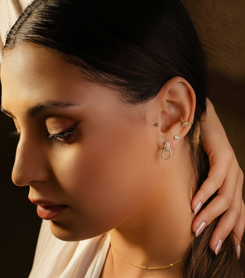 - Composição: Banho de ouro 18K e zirconia.
