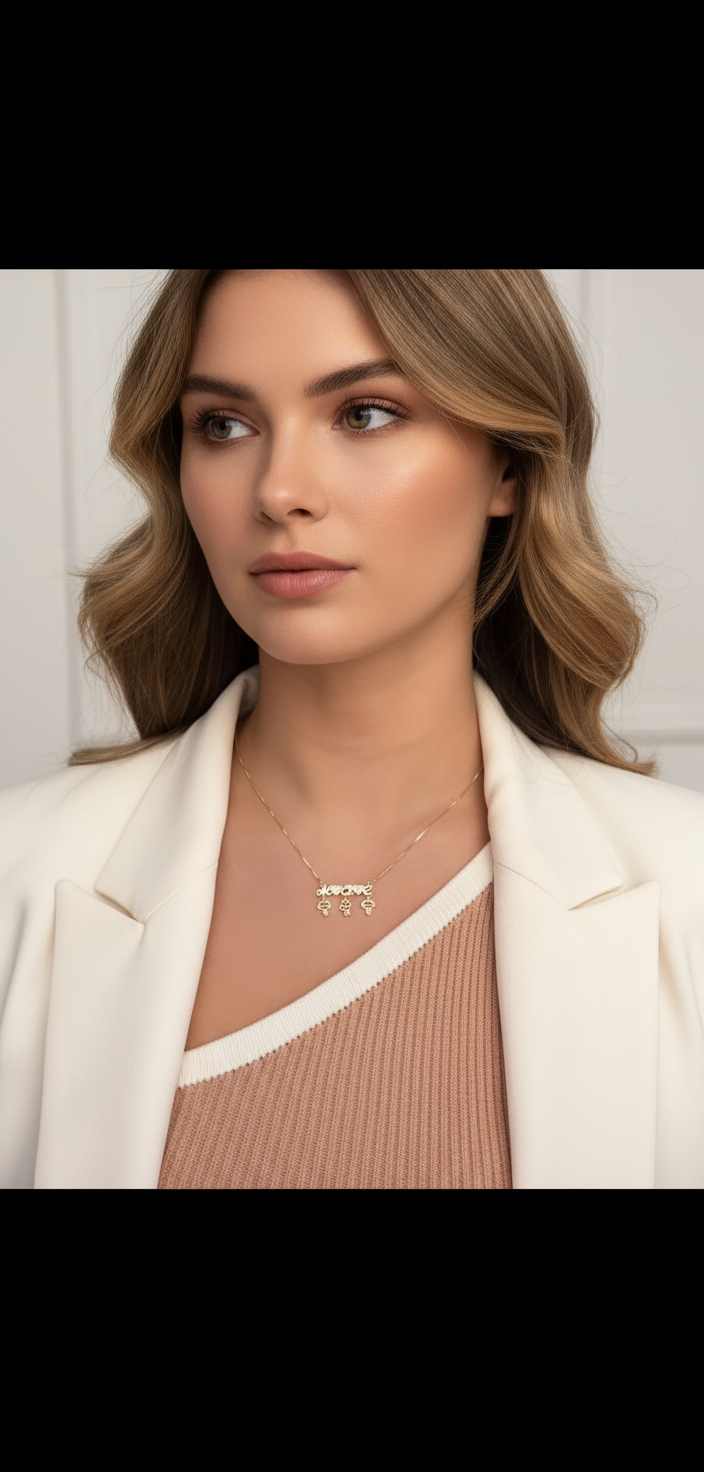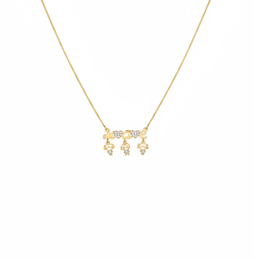- Colar dourado com pingentes Mãe de 2 Meninas e 1 Menino