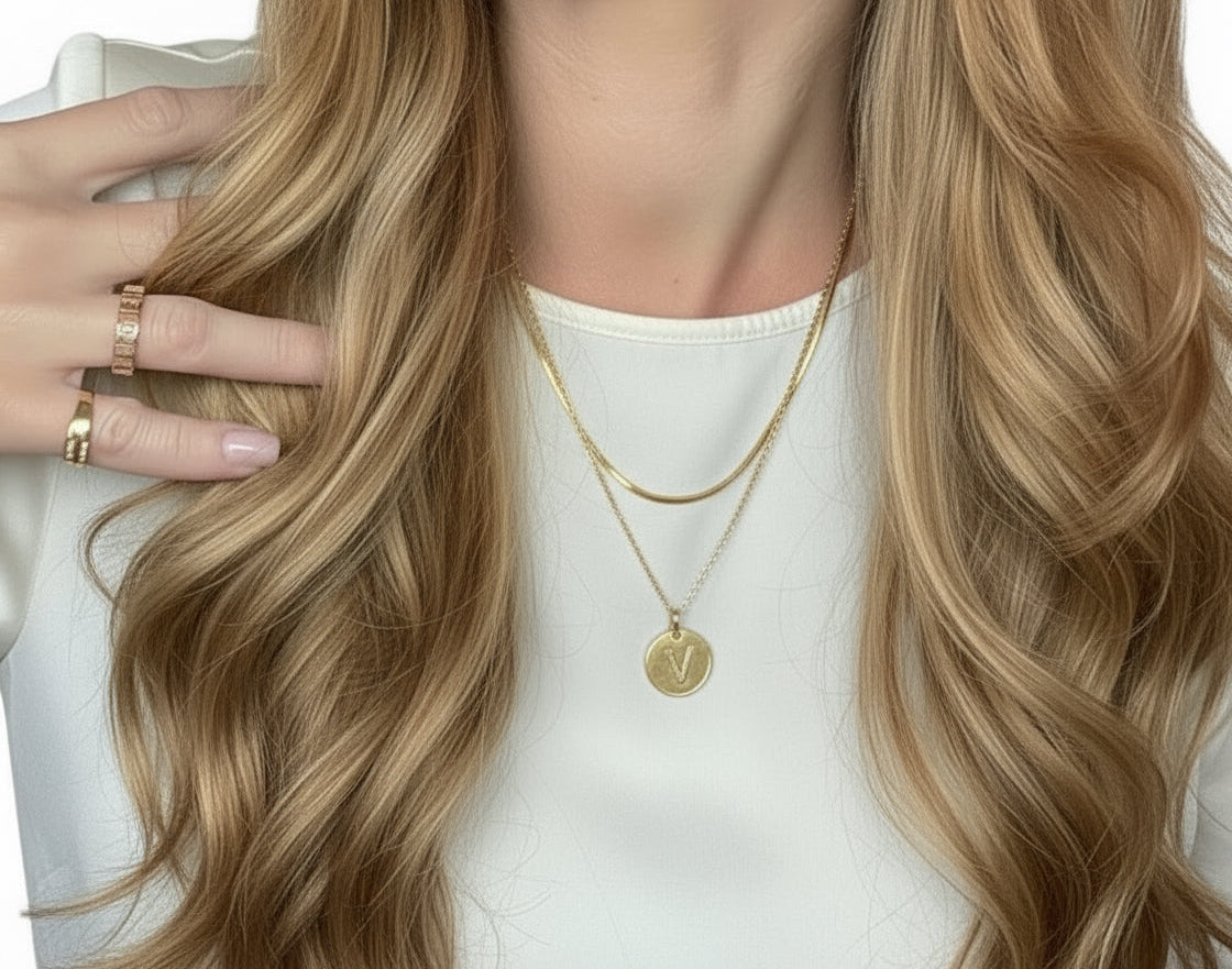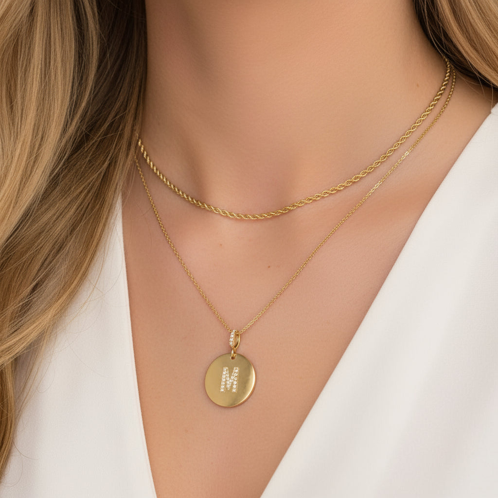 -Colar dourado com corrente veneziana personalizado, com medalha com letra inicial com detalhe cravejado em zirconia.